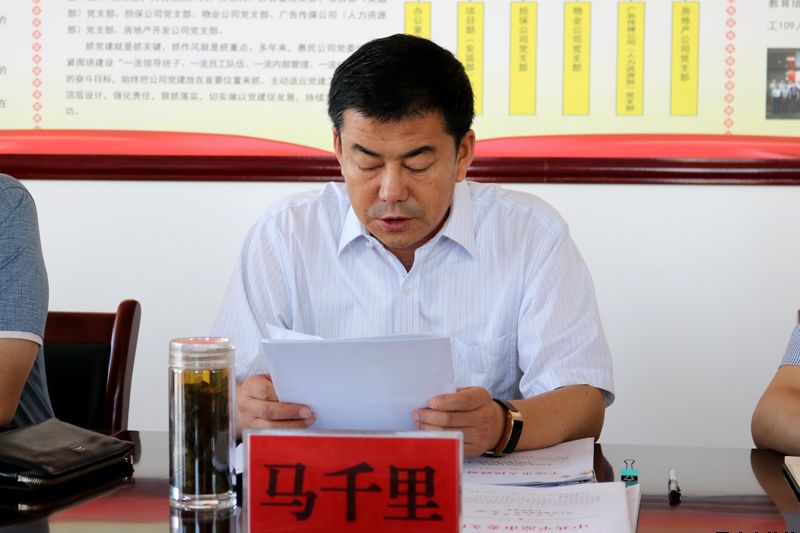 馬千里要求,公司上下要迅速行動,抓好貫徹落實。一要傳達(dá)學(xué)習(xí)好會議精神,組織員工反復(fù)學(xué),持續(xù)學(xué),深刻領(lǐng)會精神內(nèi)涵,確保入腦入心。二要扎實推進(jìn)“兩學(xué)一做”學(xué)習(xí)教育常態(tài)化制度化,嚴(yán)格落實“三會一課”制度,深入學(xué)習(xí)習(xí)近平總書記系列重要講話精神和治國理政新理念新思想新戰(zhàn)略,用習(xí)近平總書記系列重要講話精神武裝頭腦、指導(dǎo)實踐、推動工作。三要結(jié)合學(xué)習(xí)貫徹會議精神,進(jìn)一步優(yōu)化工作思路,加快推進(jìn)惠民投資大廈、立體停車庫、房地產(chǎn)開發(fā)等項目建設(shè)。四要深入研究公司業(yè)務(wù)轉(zhuǎn)型的思路和舉措,籌備召開專題會議,征求各個方面的意見,凝聚各方面的智慧,全力推進(jìn)公司轉(zhuǎn)型發(fā)展。五要抓好“百日攻堅”行動,緊盯全年目標(biāo),進(jìn)一步細(xì)化工作措施,合理調(diào)配工作力量,大干一百天,確保圓滿或超額完成全年各項目標(biāo)任務(wù)。