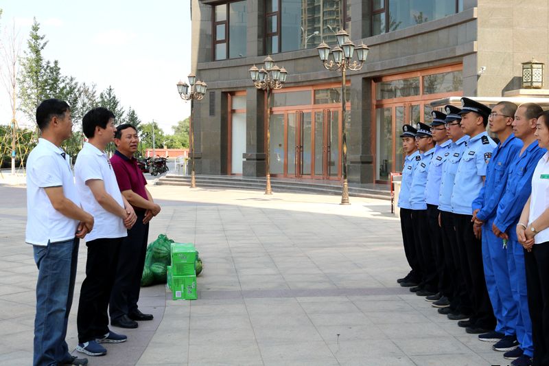 對于堅守在公司一線崗位的基層員工,連續(xù)的高溫牽動著公司領(lǐng)導(dǎo)的心,為將公司的關(guān)懷和慰問及時傳遞給一線員工,7月12日下午,受公司黨委書記、董事長馬千里委托,公司黨委副書記、總經(jīng)理唐常寧,副總經(jīng)理魏顯文、鄭忠軍、馬新平、柳振源,總工程師高健前往新北嘉園、惠民大廈施工現(xiàn)場和新城國際、惠民花園物業(yè)中心、柳湖路苗圃,向奮戰(zhàn)在一線的基層員工送去慰問,并將公司準(zhǔn)備的高溫慰問品送到他們手中,讓員工們在烈日炎炎的酷暑中感受到一絲舒心的涼意。
