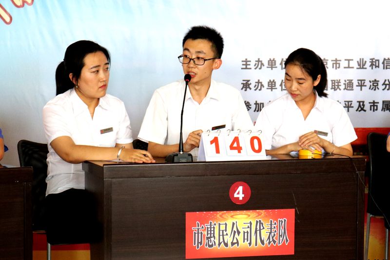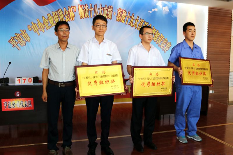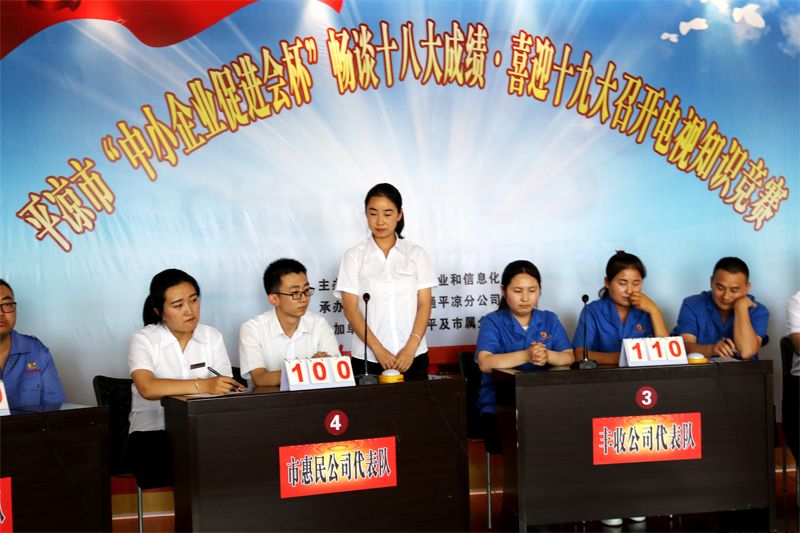 7月20日下午,平?jīng)鍪小爸行∑髽I(yè)促進(jìn)會(huì)杯”暢談十八大·喜迎十九大電視知識(shí)競賽中省駐平及市屬企業(yè)賽區(qū)比賽在聯(lián)通公司會(huì)議室圓滿結(jié)束,代表我公司參賽的員工張石晶、劉婕、魏靜、孟靖洋冷靜應(yīng)戰(zhàn),配合默契,高水平發(fā)揮,最終以220分的好成績?nèi)〉弥惺●v平及市屬企業(yè)賽區(qū)第一名,榮獲賽區(qū)一等獎(jiǎng),順利進(jìn)入全市復(fù)賽。