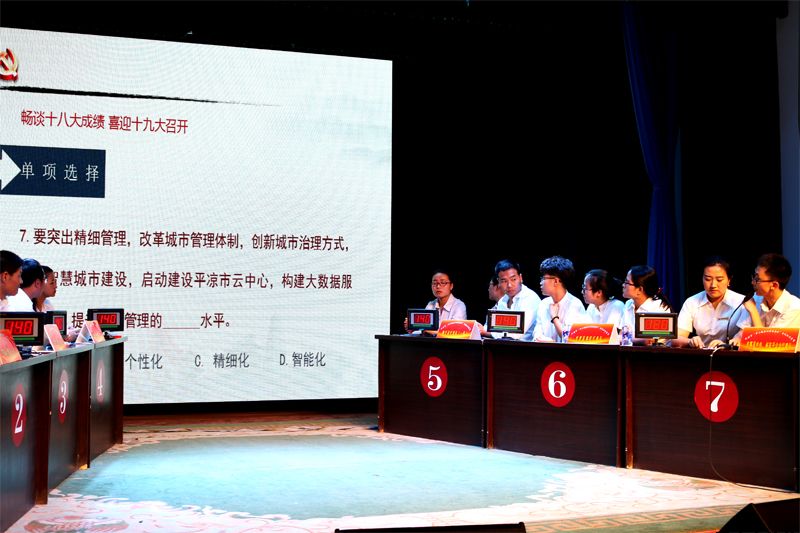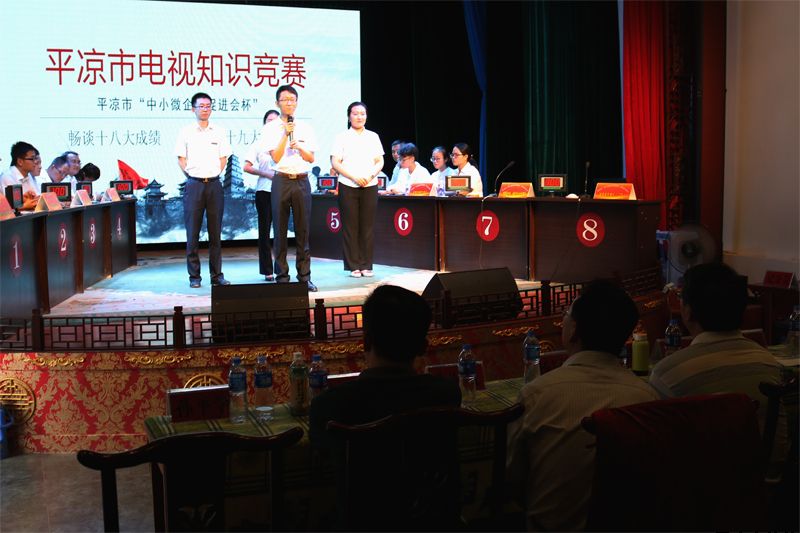 7月26日上午,參加全市“中小企業(yè)促進會杯”暢談十八大成績·喜迎十九大召開電視知識競賽復賽階段比賽的32支隊伍,為取得決賽的入場券在崆峒區(qū)“崆峒笑談”傳承演藝中心展開激烈角逐,我公司參賽隊代表中省駐平及市屬企業(yè)賽區(qū)參加競賽。