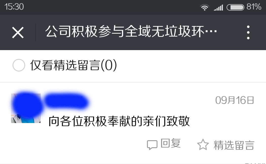 惠民公司全體員工無私貢獻(xiàn),為城市綠色整潔所付出的善行義舉也被社會各界群眾所稱贊,紛紛點贊支持。有網(wǎng)友在筆者朋友圈留言:“惠民公司處處體現(xiàn)惠民平?jīng)鋈嗣瘛?,還有網(wǎng)友在惠民公司微信公眾號留言:“向各位積極奉獻(xiàn)的親們致敬”。