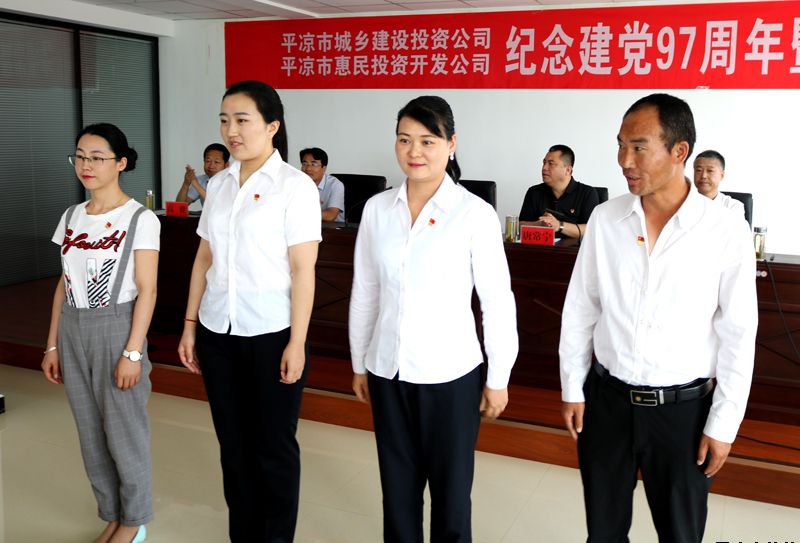 會上,副總經(jīng)理鄭忠軍宣讀了《關于接收杜天元等4名同志為中共預備黨員的通知》,副總經(jīng)理馬新平宣讀了《表彰先進黨支部和優(yōu)秀共產(chǎn)黨員的決定》,副總經(jīng)理柳振源宣讀了《甘肅省作風建設年活動領導小組辦公室關于暗訪督查中發(fā)現(xiàn)的干部作風問題的通報》,各黨支部書記為新吸納預備黨員佩戴了黨徽;全體黨員進行宣誓并重溫入黨誓詞;為先進黨支部和優(yōu)秀共產(chǎn)黨員頒發(fā)了獎牌和榮譽證書。