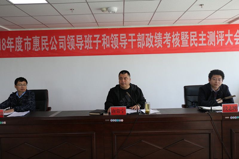 根據(jù)市委統(tǒng)一安排部署,5月8日,市委第二考核組對市惠民公司2018年度市管領導班子及領導干部工作政績、黨風廉政建設等工作進行考核。市委考核組成員、市委組織部檔案信息管理科科長段志剛同志,市人社局主任科員趙中瑞同志出席述職大會并組織民主測評、個別談話等考核工作。市惠民公司黨委書記、董事長唐常寧主持會議,代表班子和個人作述職報告。