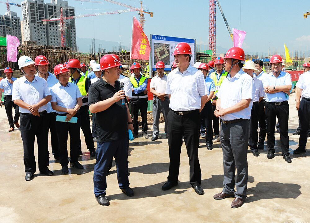 8月7日,全市項(xiàng)目觀摩督查第一組蒞臨崇文書苑小區(qū)一期(配建平?jīng)鲆恢行滦^(qū))建設(shè)項(xiàng)目工地,現(xiàn)場觀摩督查項(xiàng)目建設(shè)情況。省政協(xié)副主席、平?jīng)鍪形瘯浌袖?,市人大常委?huì)主任李雪峰,市委常委、崆峒區(qū)委書記陳鐸,市委常委、組織部部長符紅斌,市委常委、市紀(jì)委書記何東,市政府副市長宋全科,市政協(xié)副主席邢建軍,市委秘書長李誠,以及崆峒區(qū)政府、市發(fā)改、工信、財(cái)政、交通、文旅、統(tǒng)計(jì)、扶貧辦等單位主要負(fù)責(zé)人實(shí)地觀摩平?jīng)鲆恢行滦^(qū)建設(shè)項(xiàng)目,市惠民公司黨委書記、董事長唐常寧,黨委委員、總經(jīng)理胡紅訓(xùn),副總經(jīng)理馬新平,總工程師高健及黨委辦(辦公室)、房產(chǎn)公司負(fù)責(zé)人陪同觀摩。
