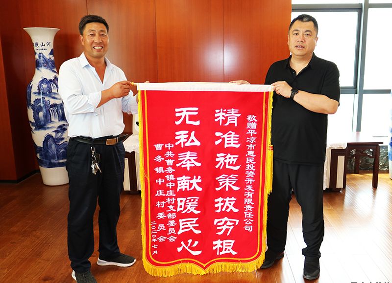 7月3日,靜寧縣曹務(wù)鎮(zhèn)黨委書(shū)記徐小勝、鎮(zhèn)政府梁濤、曹務(wù)鎮(zhèn)中莊村黨支部書(shū)記兼村委會(huì)主任霍小軍、曹務(wù)鎮(zhèn)柳岔村黨支部書(shū)記兼村主任柳和顯等一行4人到市惠民公司,代表靜寧縣曹務(wù)鎮(zhèn)黨委、鎮(zhèn)政府及中莊村、柳岔村,向市惠民公司敬贈(zèng)錦旗,對(duì)惠民公司一直以來(lái)大力幫扶救助表示衷心感謝。市惠民公司黨委書(shū)記、董事長(zhǎng)唐常寧代表公司接受錦旗,黨委委員、副總經(jīng)理鄭忠軍參加儀式。