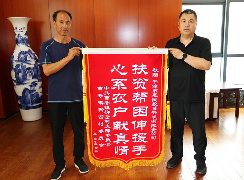 接受曹務(wù)鎮(zhèn)柳岔村黨支部、村委會(huì)敬贈(zèng)的錦旗