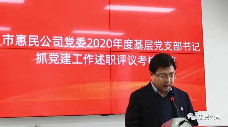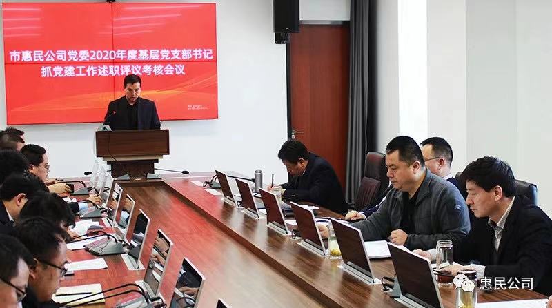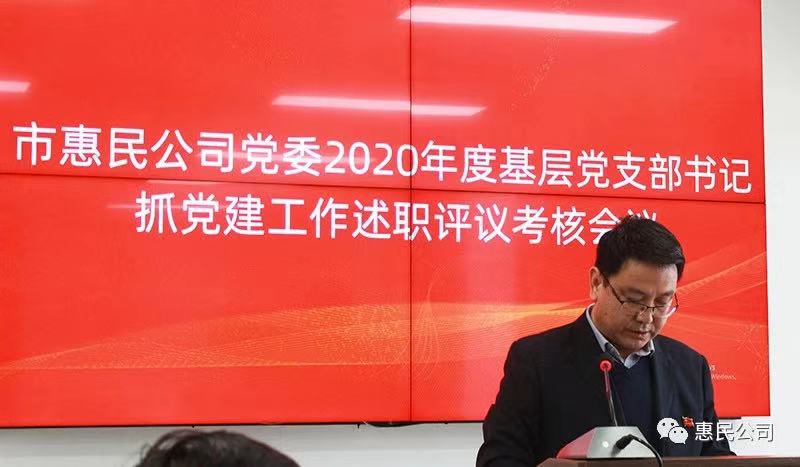 1月21日,市惠民公司黨委召開2020年度基層黨支部書記抓黨建工作述職評(píng)議考核會(huì)議。會(huì)議由黨委書記、董事長(zhǎng)唐常寧主持,公司黨員領(lǐng)導(dǎo)班子成員,各黨支部書記,各部室、下屬公司主要負(fù)責(zé)人及黨務(wù)工作人員參加會(huì)議。