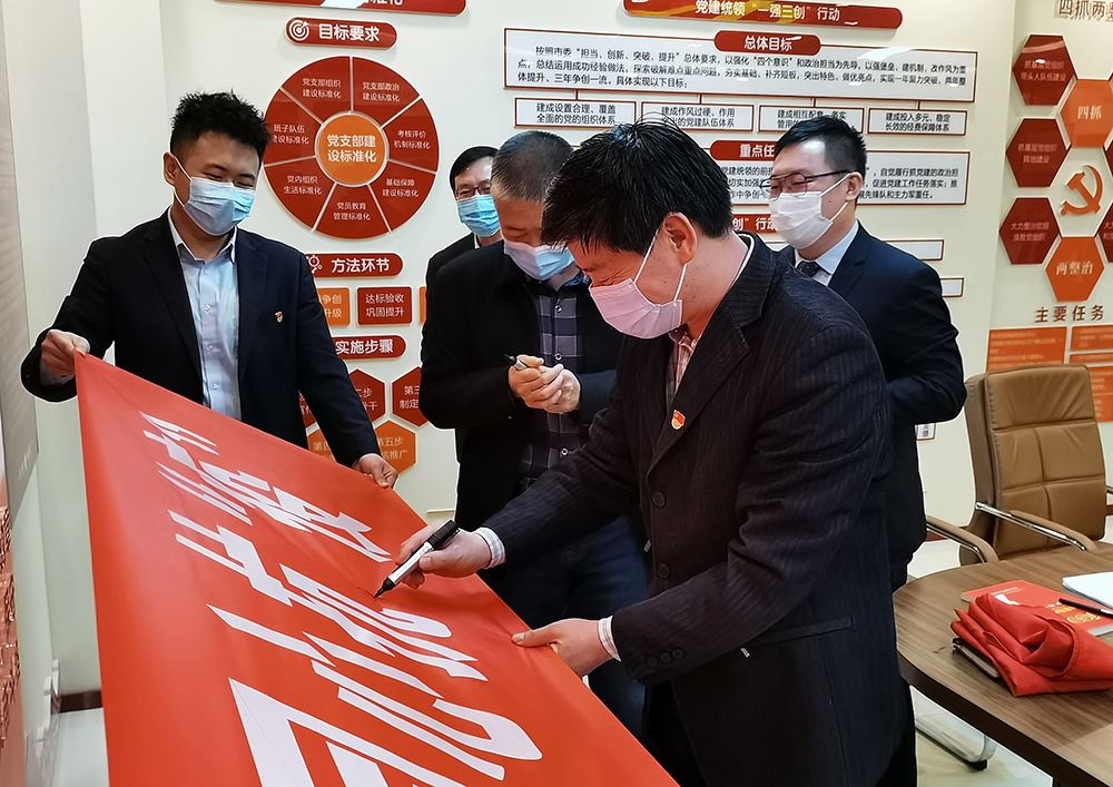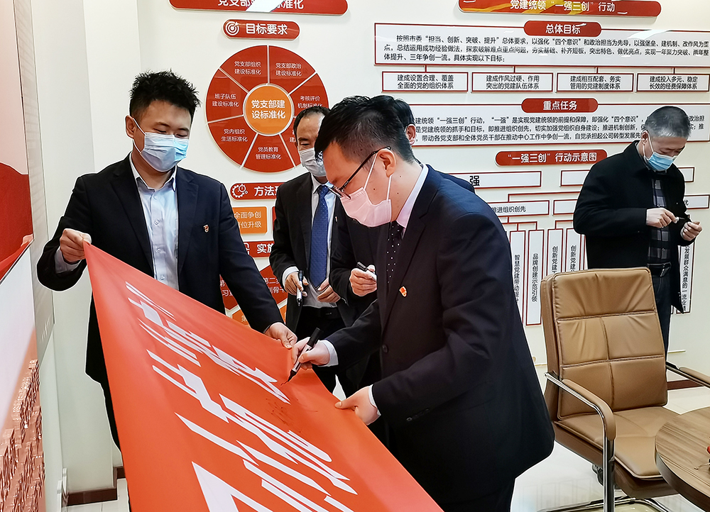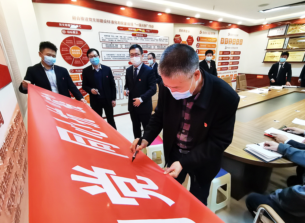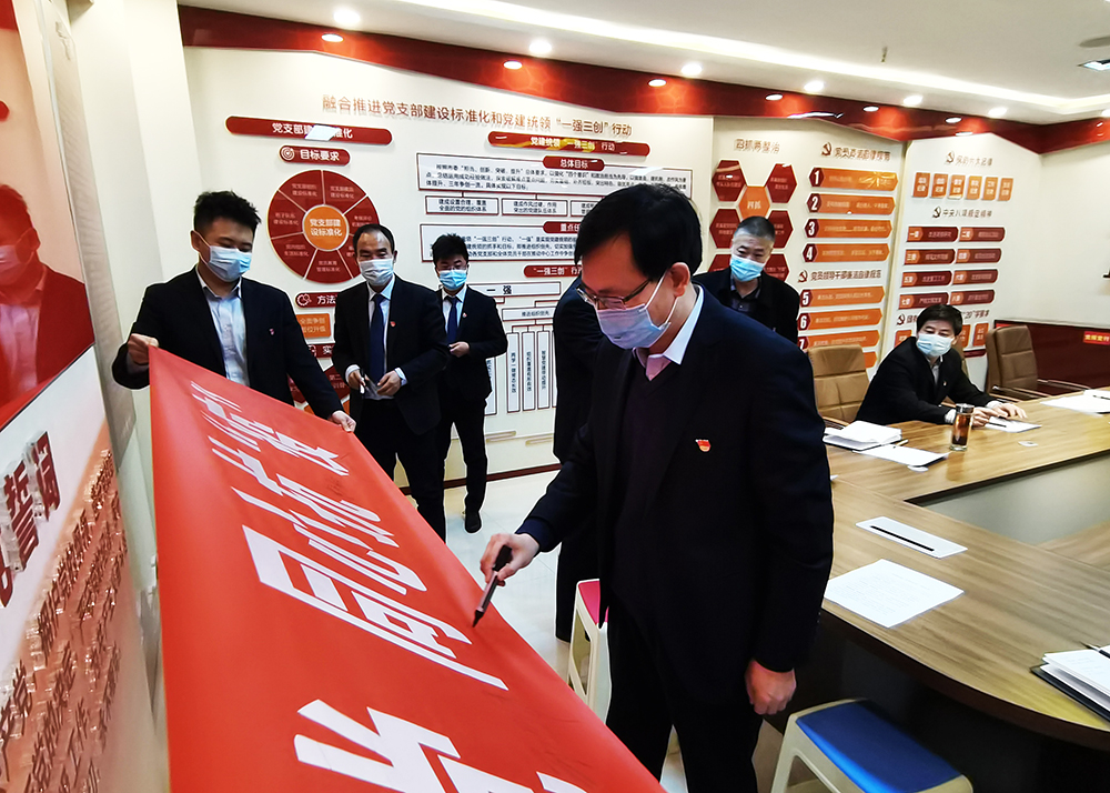 活動現(xiàn)場宣讀了“共同抗疫、文明過節(jié)”倡議書,全體黨員面對黨旗鄭重宣誓,堅(jiān)決做好疫情防控工作,隨后,參與活動人員紛紛在印有“赤心向黨,同心抗‘疫’”的條幅上簽名,爭做企業(yè)疫情防控的先遣隊(duì)與“逆行者”。