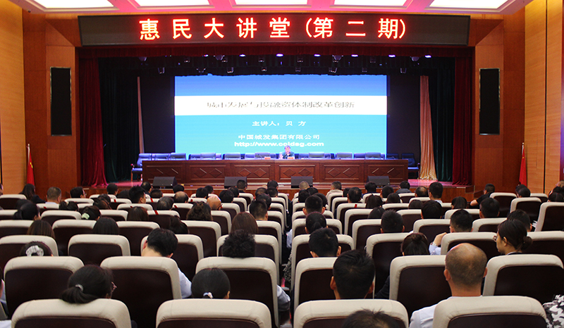 本次“惠民大講堂”特別邀請到了北京大學(xué)客座教授、中國城建項目招標網(wǎng)首席顧問、中國城發(fā)集團總裁、南京韻道投資管理有限公司董事長貝方圍繞“城市發(fā)展與投融資體制改革創(chuàng)新”作主題宣講。作為全國城投公司聯(lián)絡(luò)會的特聘專家,貝方擁有十余年城市發(fā)展研究與從業(yè)經(jīng)驗,在PPP項目咨詢、基礎(chǔ)設(shè)施投融資管理咨詢等方面,具有豐富的實踐經(jīng)驗和成功案例,在新城區(qū)、片區(qū)、開發(fā)區(qū)投融資咨詢等方面,具有獨到見解和戰(zhàn)略眼光。