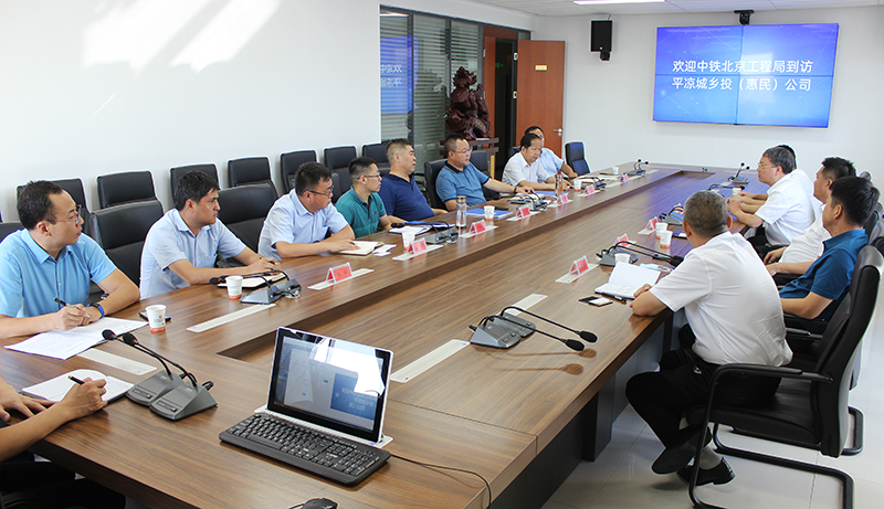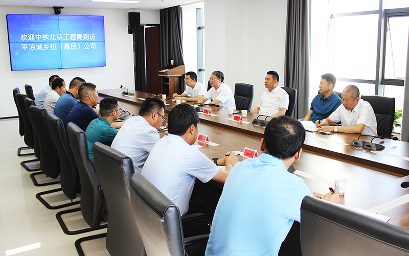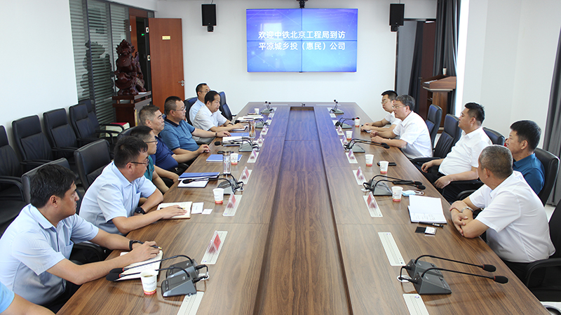 會上,胡紅訓(xùn)對王朋一行到訪表示歡迎,并詳細(xì)介紹了平?jīng)龀青l(xiāng)投(惠民)公司基本情況和平?jīng)鲕娒窈嫌脵C(jī)場項(xiàng)目進(jìn)展及前期融資情況。王朋介紹了中鐵北京工程局集團(tuán)公司基本情況,并從推動(dòng)雙方合作發(fā)展、項(xiàng)目對接等方面交換了意見。