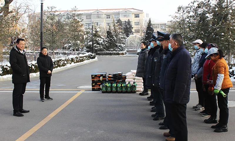 1月29日,公司黨委委員、總經(jīng)理胡紅訓(xùn),副總經(jīng)理王徐周、鄭忠軍,總經(jīng)濟師王國太帶領(lǐng)相關(guān)部門負責(zé)人及工作人員分成兩個慰問小組,分別對市委、市政府機關(guān)物業(yè)服務(wù)中心、公園路立體停車庫、御景華府物業(yè)服務(wù)中心、法院物業(yè)服務(wù)中心、惠民大廈物業(yè)服務(wù)中心、惠通公司、新城國際物業(yè)站、柳湖路苗圃、新北嘉園物業(yè)站、果園路立體停車庫的一線員工進行了慰問,將公司的關(guān)懷送到了一線工作人員的身邊。