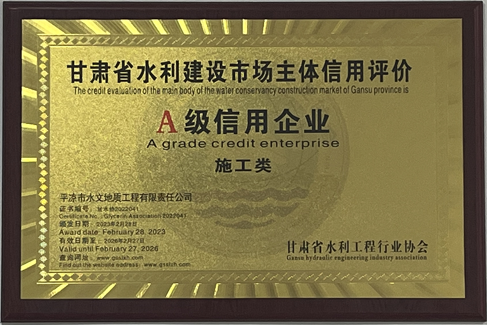 近日,甘肅省水利工程協(xié)會發(fā)布《關于2022年度甘肅省水利建設市場主體信用評價結果的公示》,水文地質工程公司榮獲2022年度甘肅省水利建設市場主體信用評價A級信用企業(yè)!