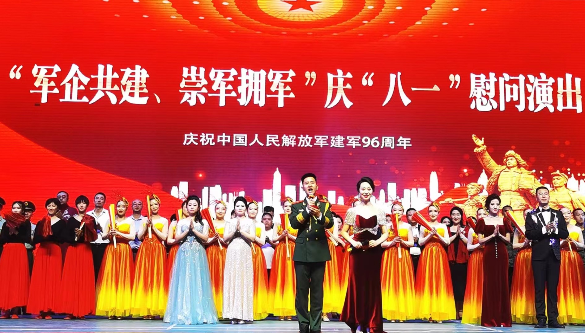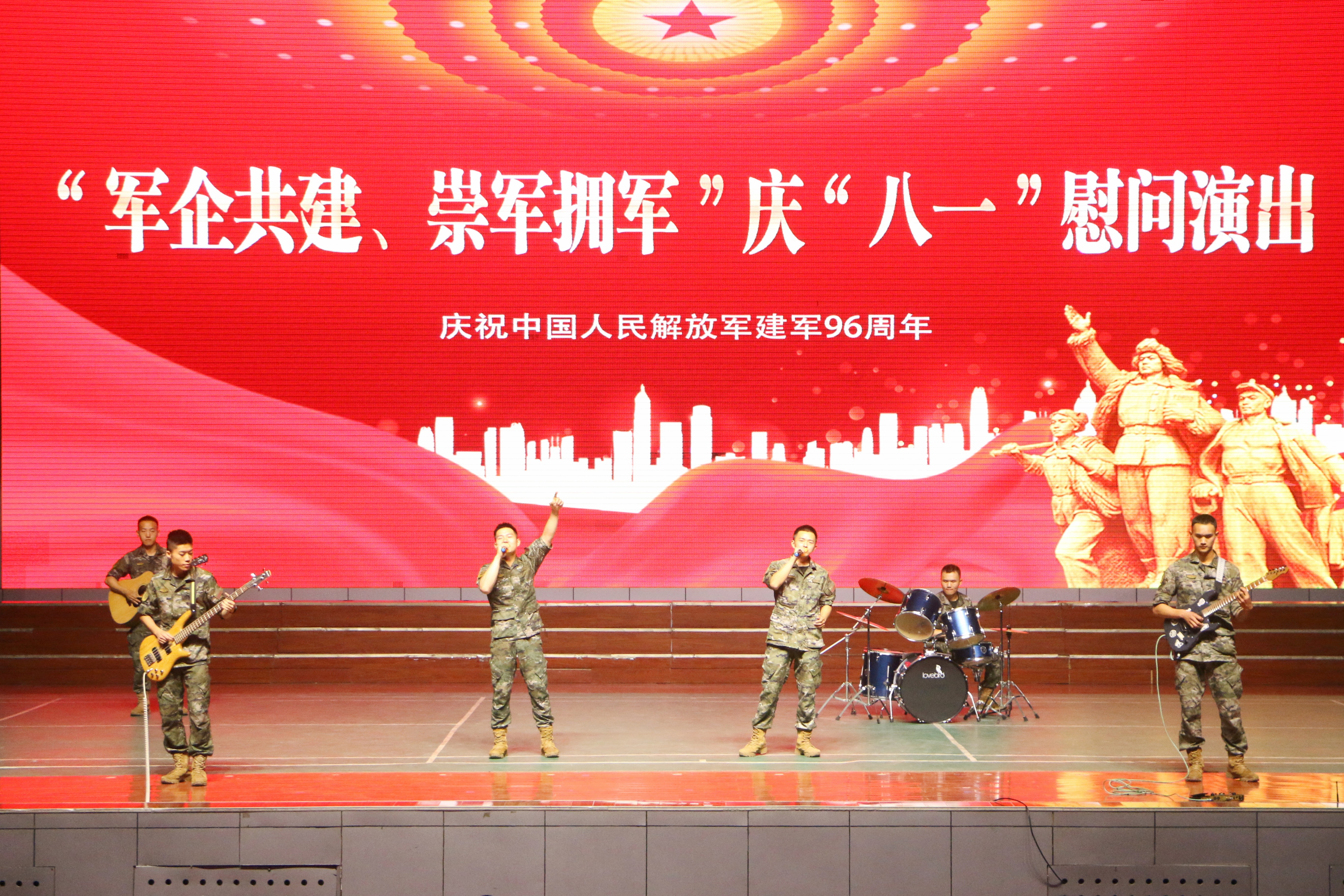 演出現(xiàn)場,集團(tuán)公司干部職工與駐隊官兵同臺演出,用歌聲和舞蹈演繹著軍愛民、民擁軍的軍民關(guān)系。軍企相繼表演了舞蹈、獨唱、合唱、小品、才藝展示等十余個節(jié)目,一個個精心編排的節(jié)目將演出一次次推向了熱潮。動人的旋律、優(yōu)美的舞姿、聲情并茂的表演贏得了現(xiàn)場觀眾的掌聲和喝彩,表現(xiàn)出當(dāng)代軍人對祖國的熱愛與祝福,以及他們豐富多彩的精神世界和建功立業(yè)的崇高情懷,謳歌了部隊官兵熱愛祖國、扎根軍營、甘于犧牲、保家衛(wèi)國的無私奉獻(xiàn)精神。