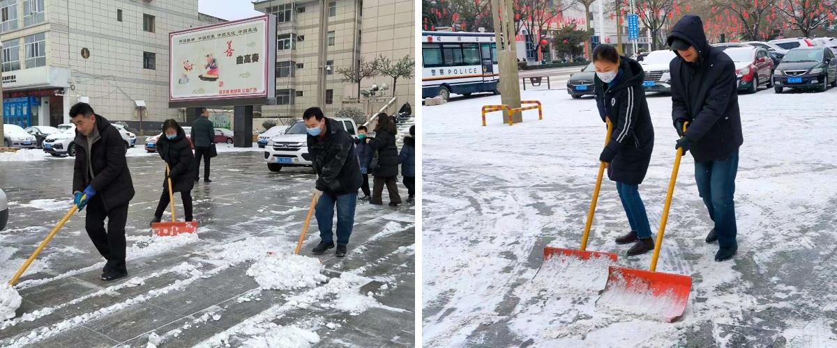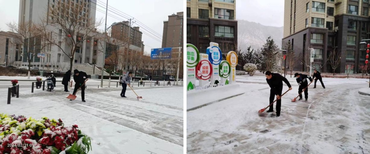 文化傳媒公司全體員工快速開(kāi)展鏟雪除冰工作,將劇院外圍平臺(tái)、人行步道、車輛出入口、廣場(chǎng)等處的積雪進(jìn)行了清掃。全體員工不畏嚴(yán)寒、干勁十足,用最短的時(shí)間為市民清理出了“安全通道”。