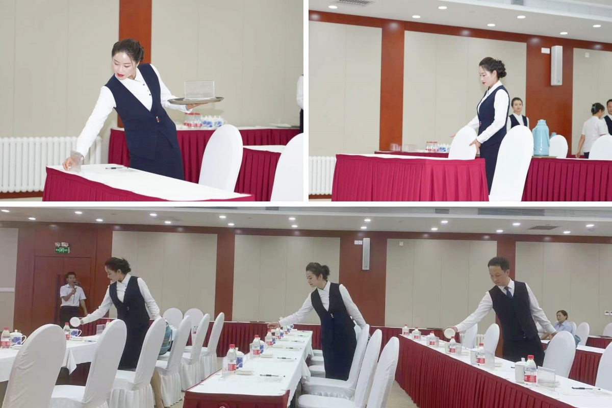 為提升會議服務(wù)質(zhì)量,提高政務(wù)會議保障能力,努力打造專業(yè)化會議服務(wù)團隊,近日,平?jīng)鲑e館舉辦了會議服務(wù)實操技能展示活動。