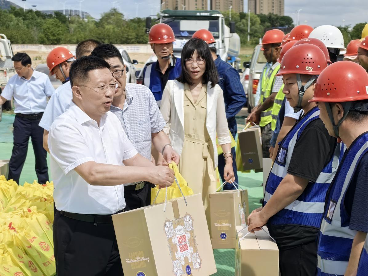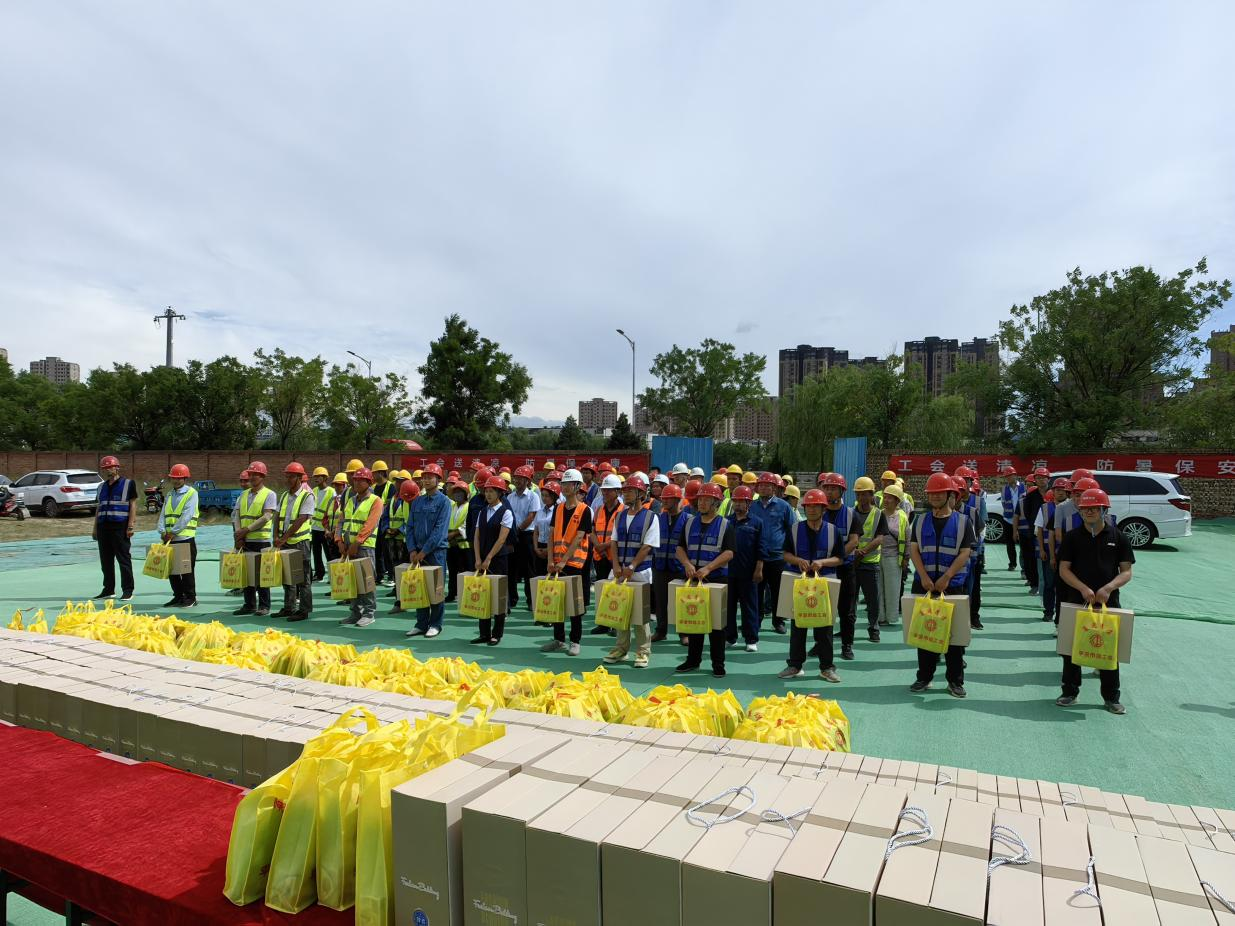 慰問現(xiàn)場,慰問組對炎炎夏日辛勤奮戰(zhàn)在建設(shè)一線的工友們表示了親切的關(guān)懷,叮囑大家要增強(qiáng)自我保護(hù)意識,注意防暑降溫。隨后,為一線建設(shè)者送上夏涼被、茶葉、花露水等防暑降溫物品。