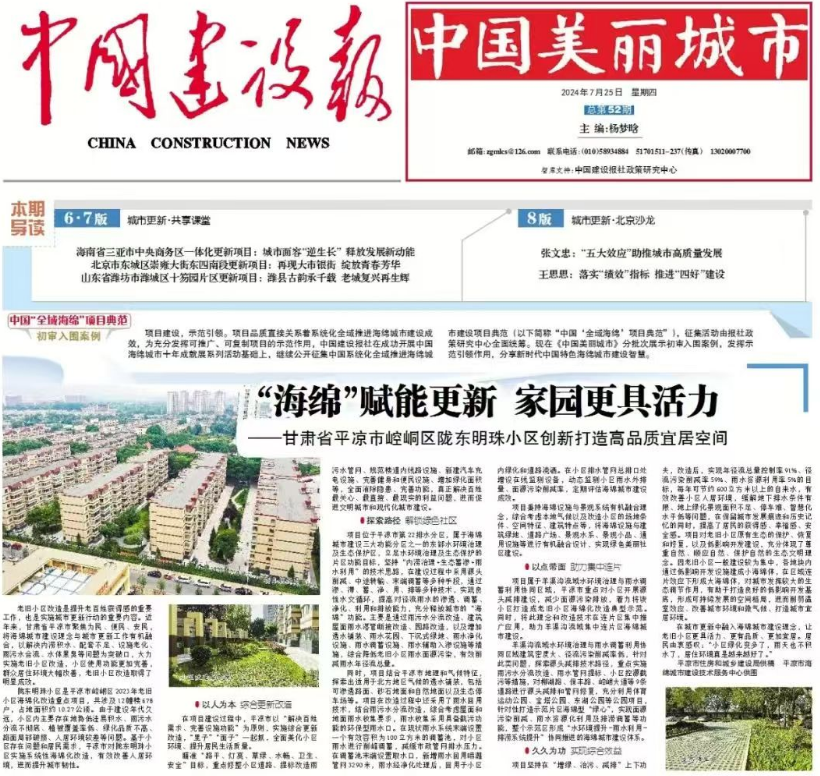 日前,經(jīng)來自中國科學(xué)院、住建部科學(xué)技術(shù)委員會、中國城市規(guī)劃設(shè)計(jì)研究院、北京大學(xué)、清華大學(xué)等單位的15位權(quán)威專家審核,綜合網(wǎng)絡(luò)投票情況產(chǎn)生了2024年度“中國‘全域海綿’項(xiàng)目典范”首批終審入圍案例。城建投公司施工的隴東明珠小區(qū)老舊小區(qū)改造項(xiàng)目、平?jīng)鍪械谝恢袑W(xué)海綿化改造工程、永順花園海綿化改造工程等3個(gè)項(xiàng)目成功入圍,并先后在《中國建設(shè)報(bào)·中國美麗城市》刊登介紹。