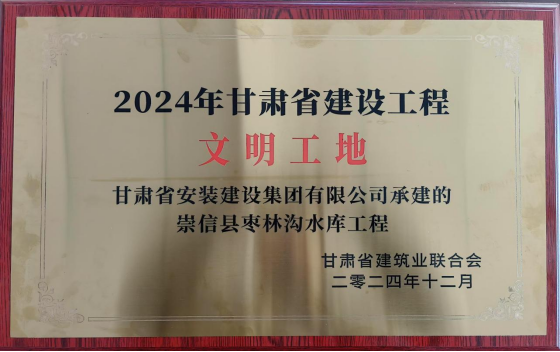 近期,由全過程咨詢公司監(jiān)理的崇信縣棗林溝水庫工程榮獲“2024年甘肅省水利工程文明工地”“2024年甘肅省建筑業(yè)綠色建造施工水平評價(jià)合格”稱號(hào)。
