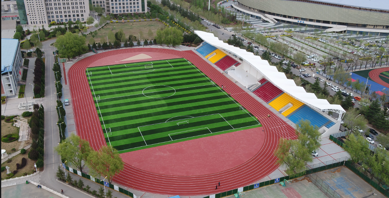 甘肅醫(yī)學院一期操場占地約二萬平方米,主要施工內(nèi)容包含主席臺改造、透水塑膠、硅PU塑膠、人工草坪、透水磚鋪裝及雨水花園提升改造等工程。維修改造完成后可滿足一萬余名師生公共體育基礎(chǔ)課教學、體育鍛煉等基本需求,并可開展短跑、中長跑、跨欄、跳高、跳遠、三級跳遠、鉛球、足球等體育比賽項目,承擔中大型師生群體課外活動。