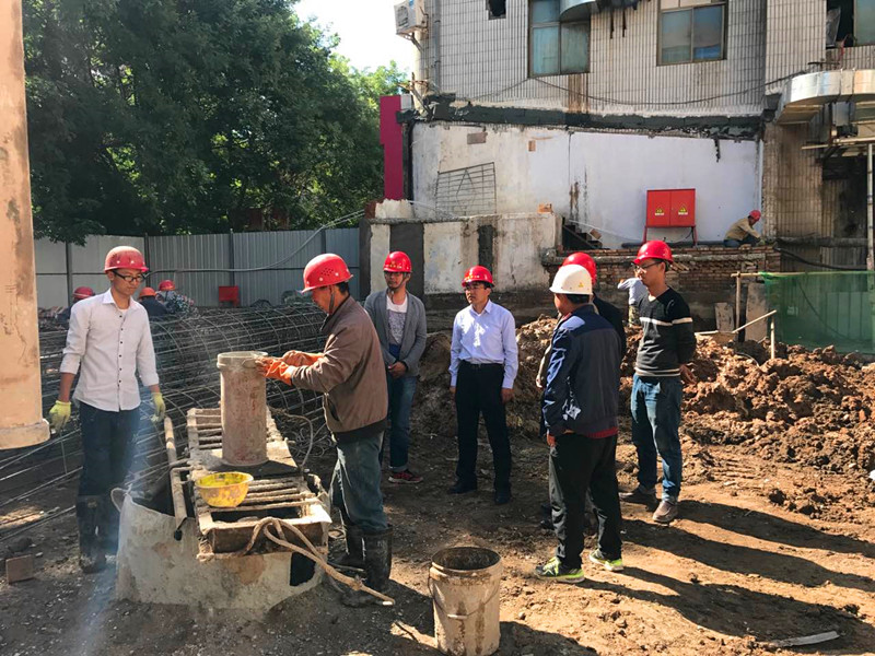 針對(duì)該項(xiàng)目施工場(chǎng)地狹小、局限性大、施工作業(yè)難度高的特點(diǎn),副總經(jīng)理馬新平現(xiàn)場(chǎng)察看并詳細(xì)詢問(wèn)了安全生產(chǎn)情況,并就9月4日檢查中發(fā)現(xiàn)的少數(shù)工人不按規(guī)定佩戴安全帽、安全員未配戴袖標(biāo)等問(wèn)題提出嚴(yán)厲批評(píng),要求施工單位切實(shí)加大整改力度,杜絕類似問(wèn)題再次發(fā)生。