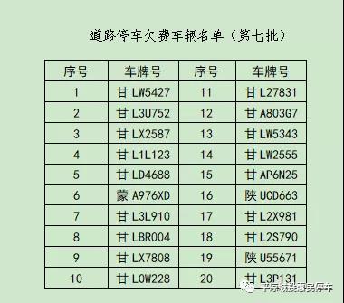 為了維護(hù)公平、公正、良好的停車秩序,我公司將2021年11月1日至2022年2月18日以來(lái)累計(jì)欠費(fèi)金額較大的車輛信息匯總進(jìn)行第七批公示(前六批公示車輛除外),請(qǐng)各位車主于2022年2月25日前及時(shí)補(bǔ)繳所欠停車費(fèi);逾期未補(bǔ)繳的,公司將欠費(fèi)信息報(bào)送“信用崆峒”平臺(tái)公示;并對(duì)逾期仍未繳清欠費(fèi)的車主通過(guò)法律途徑予以追繳,將會(huì)對(duì)個(gè)人征信產(chǎn)生嚴(yán)重影響。