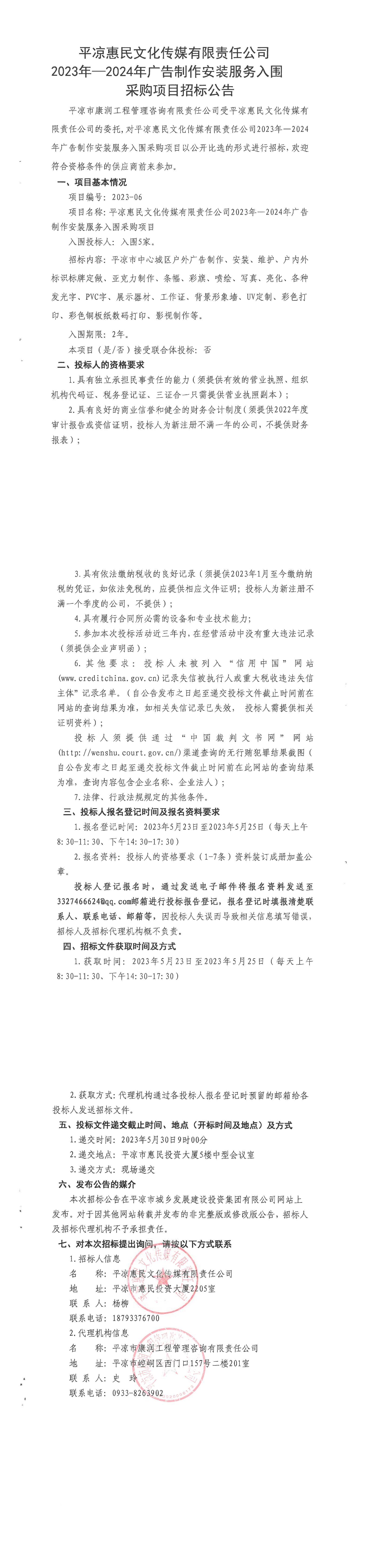 2023年——2024年廣告制作安裝服務(wù)入圍采購項(xiàng)目招標(biāo)公告